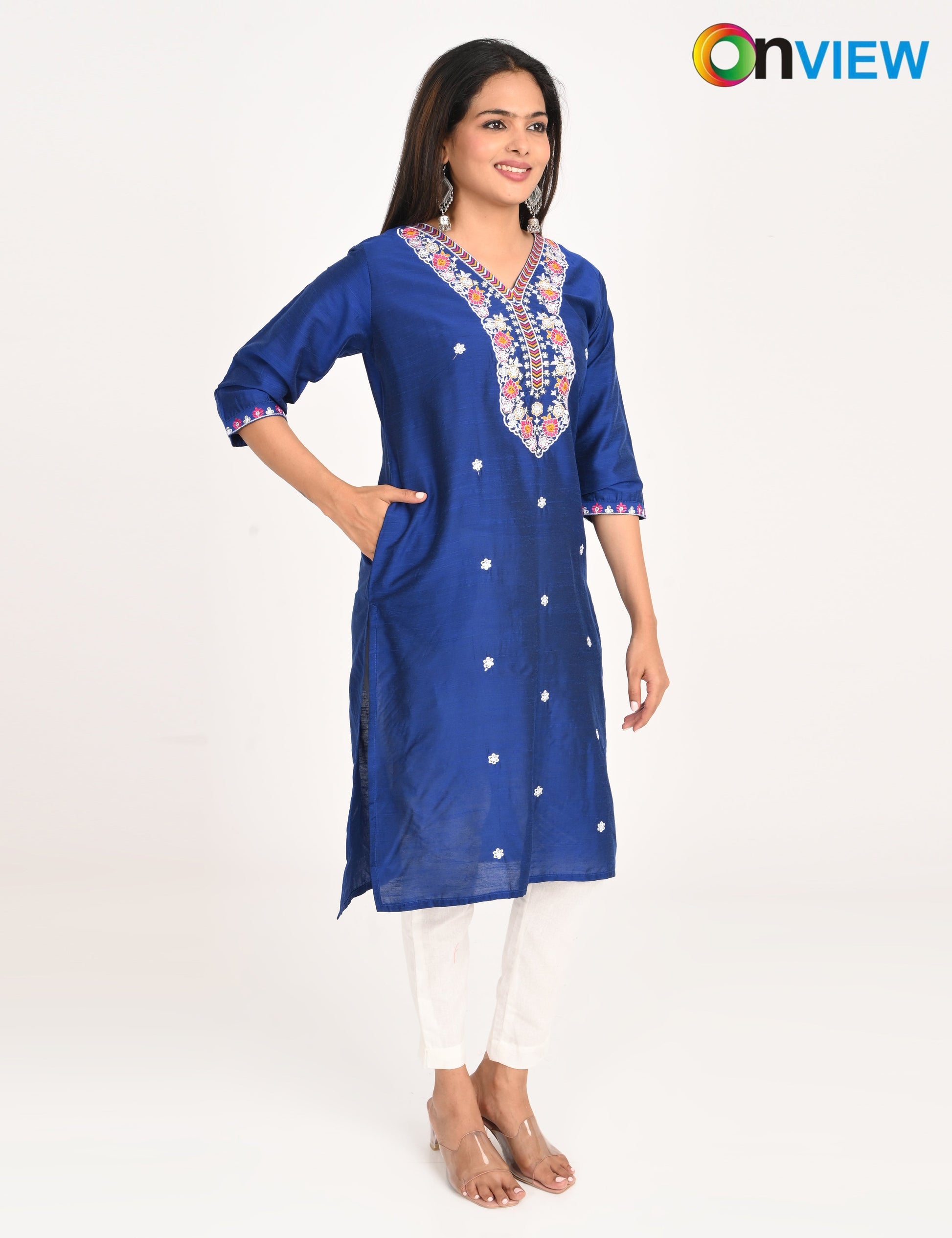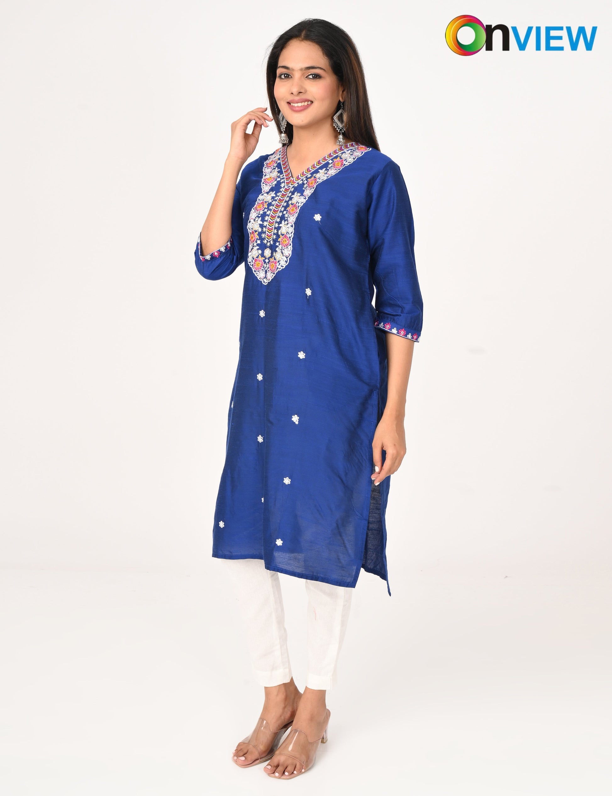 The ONVIEW SLUB BOUTIQUE WORK is a sophisticated blend of luxurious fabric and delicate craftsmanship, designed to elevate your style effortlessly. Made from premium-quality silk, this kurti boasts a rich texture and an elegant sheen that exudes opulence, making it a perfect choice for special occasions or everyday elegance.