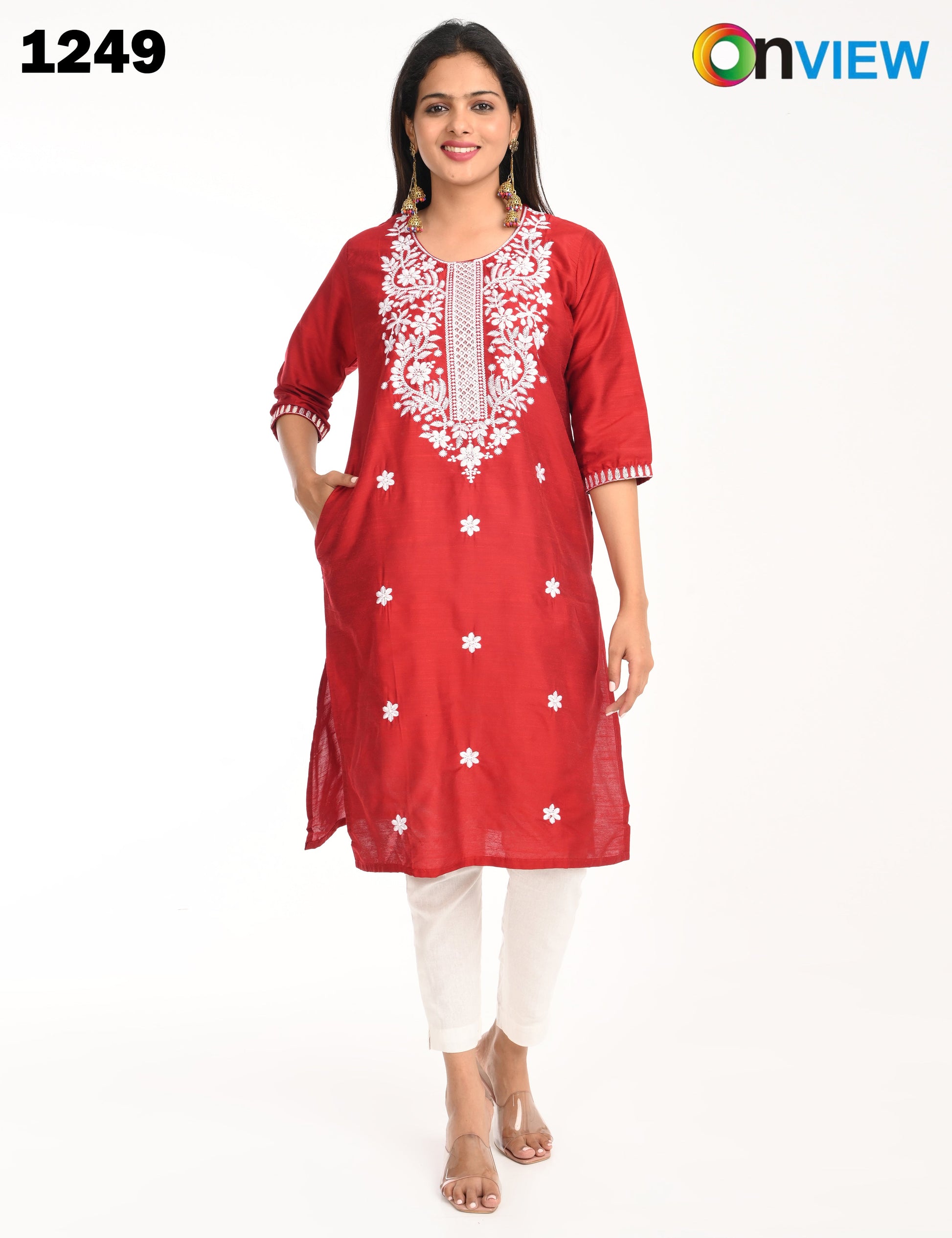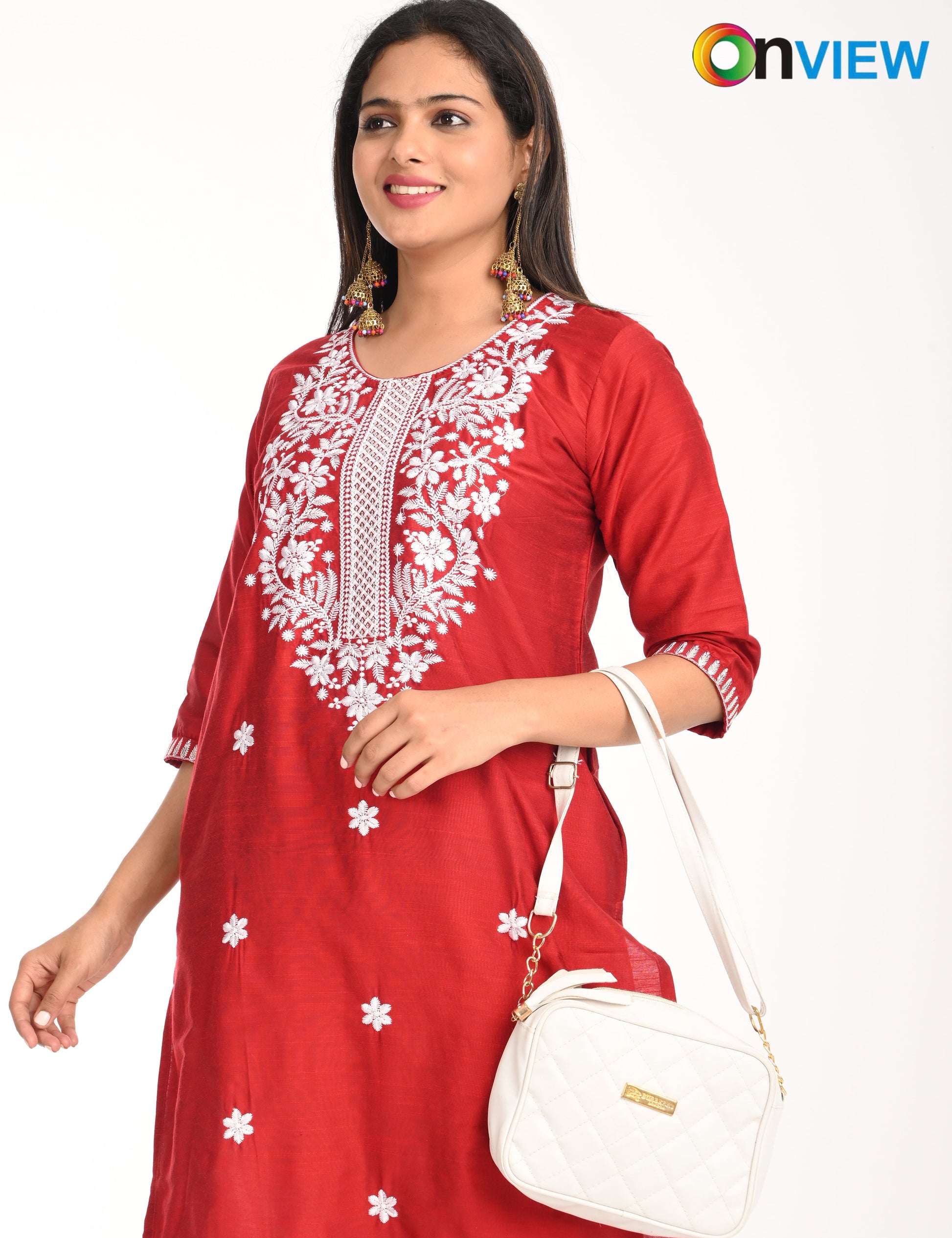 The ONVIEW SLUB BOUTIQUE WORK is a sophisticated blend of luxurious fabric and delicate craftsmanship, designed to elevate your style effortlessly. Made from premium-quality silk, this kurti boasts a rich texture and an elegant sheen that exudes opulence, making it a perfect choice for special occasions or everyday elegance.