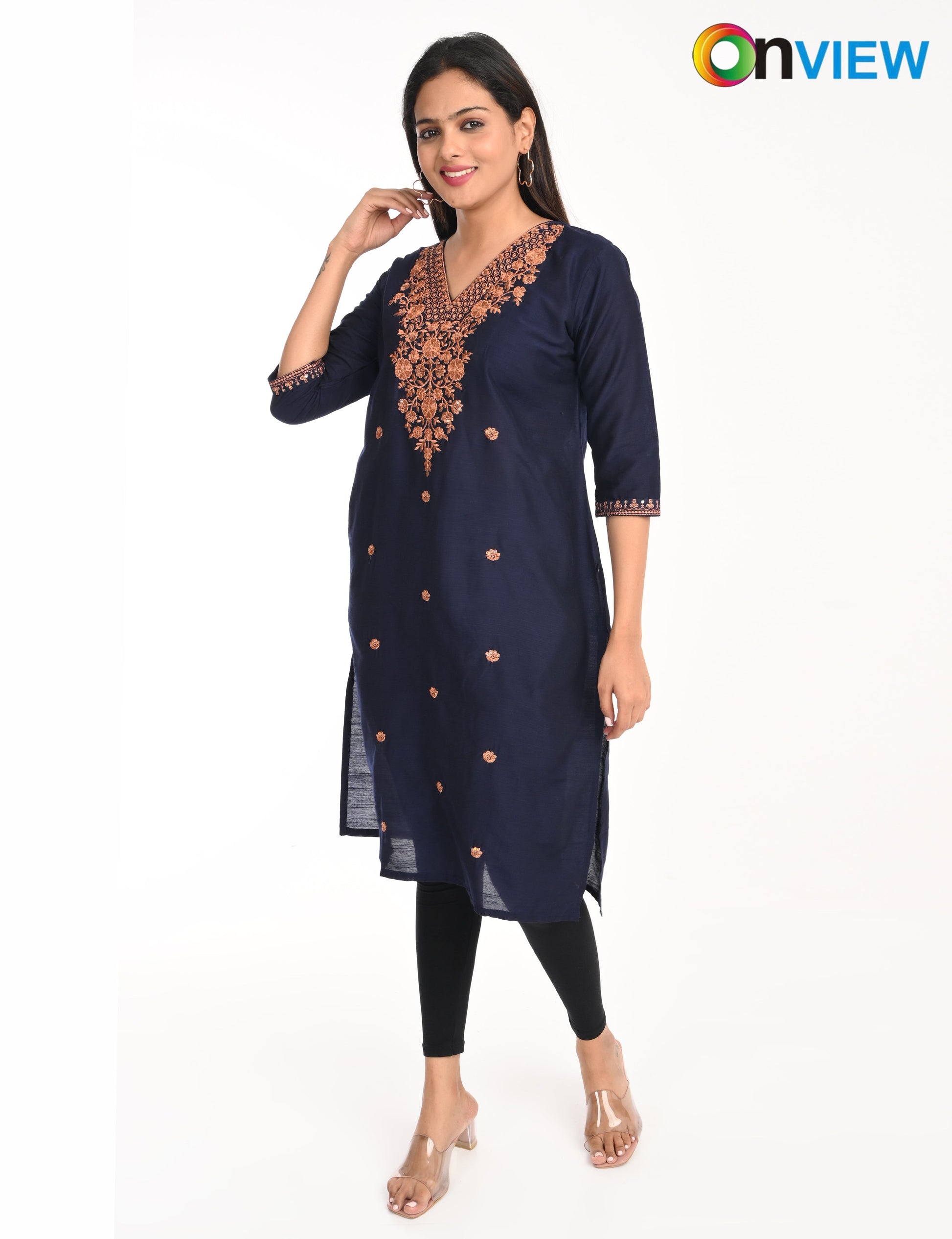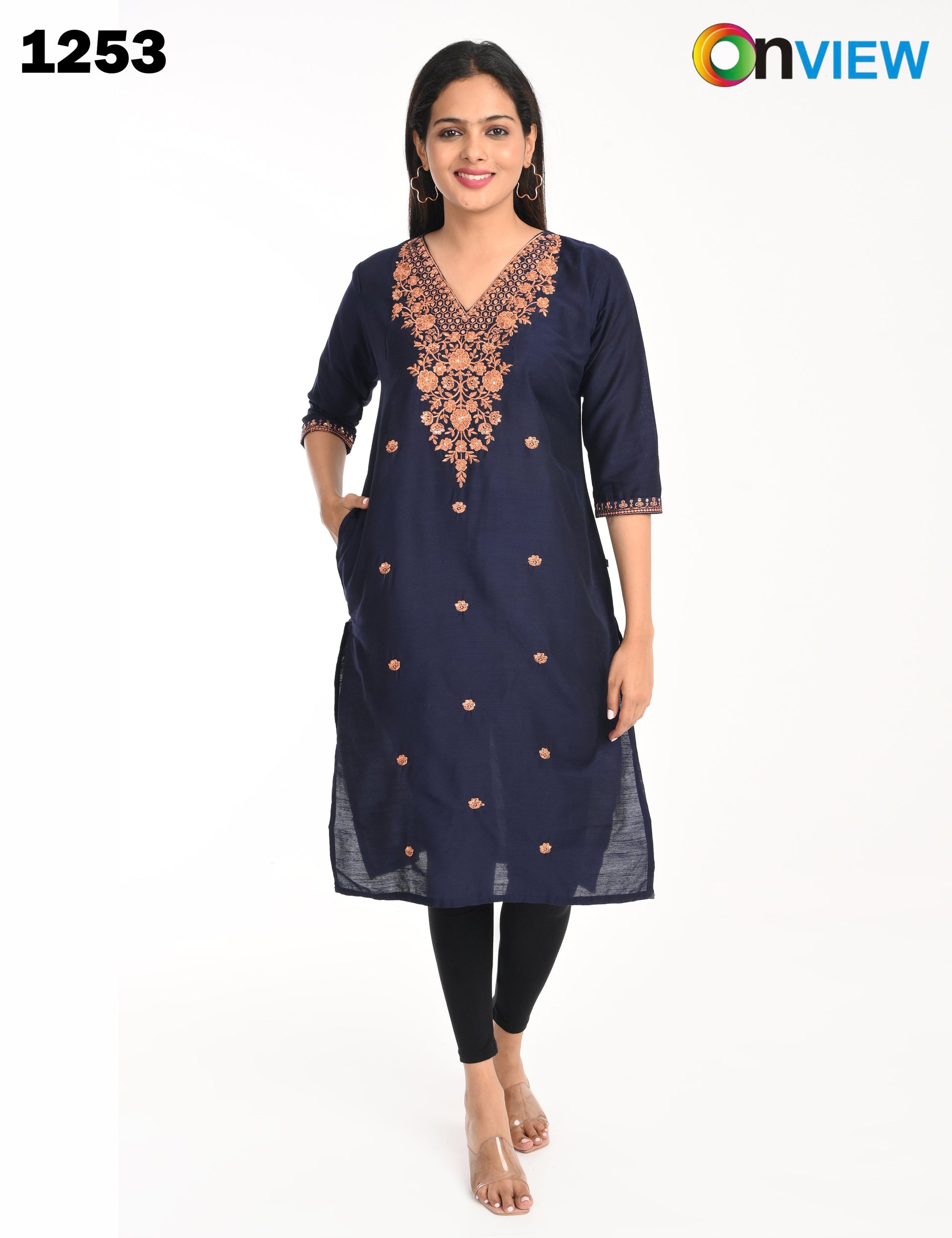 The kurti is adorned with subtle, intricate embroidery that adds a touch of grace and refinement. The small embroidery patterns are thoughtfully placed, creating a harmonious balance that enhances the overall design without overwhelming its simplicity. This design approach makes it versatile, suitable for festive gatherings, casual outings, or even formal office wear.