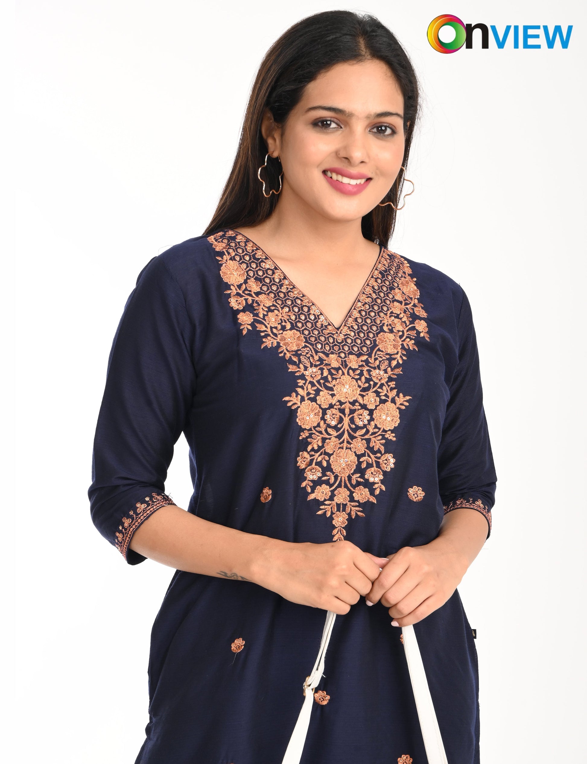 The ONVIEW SLUB BOUTIQUE WORK is a sophisticated blend of luxurious fabric and delicate craftsmanship, designed to elevate your style effortlessly. Made from premium-quality silk, this kurti boasts a rich texture and an elegant sheen that exudes opulence, making it a perfect choice for special occasions or everyday elegance.
