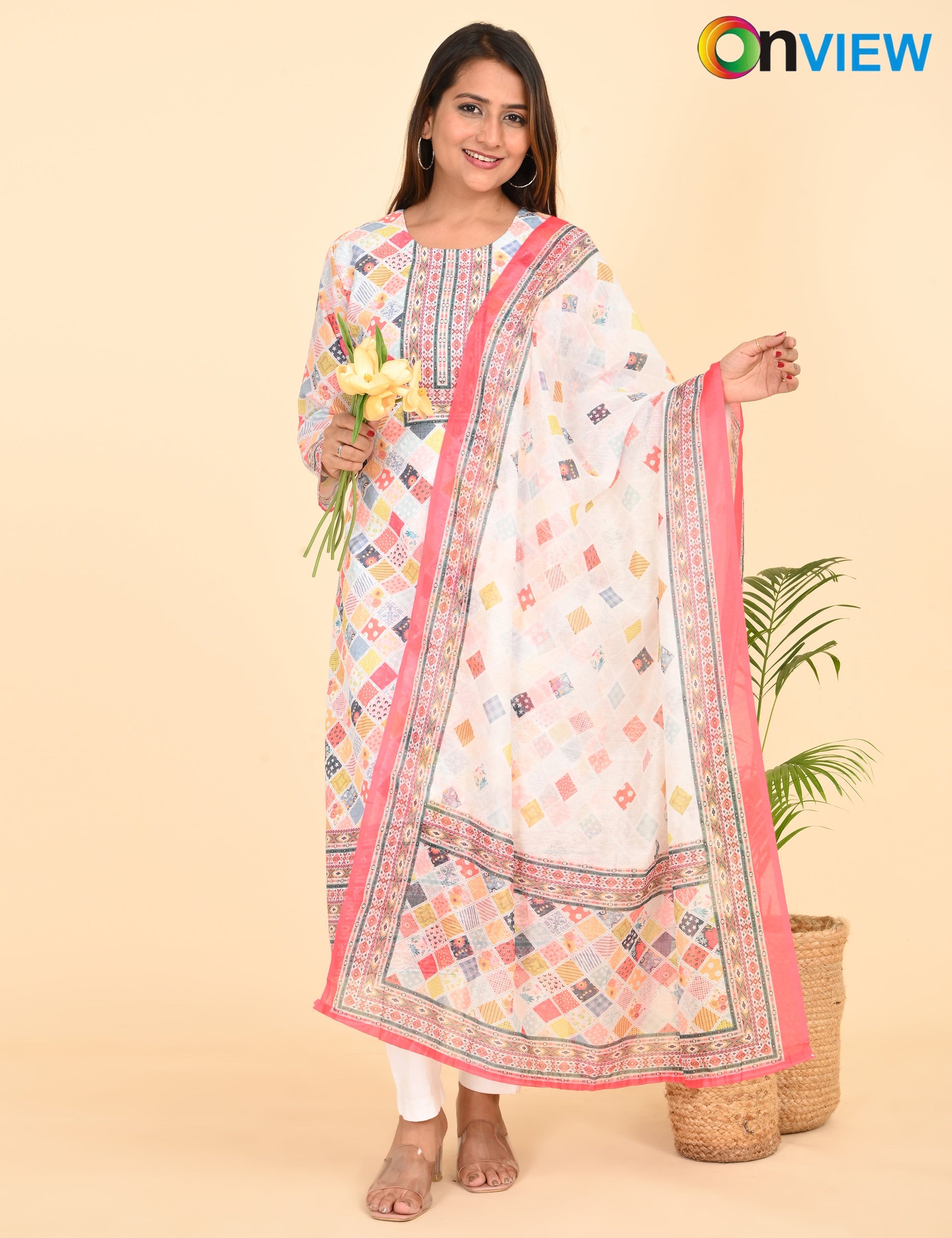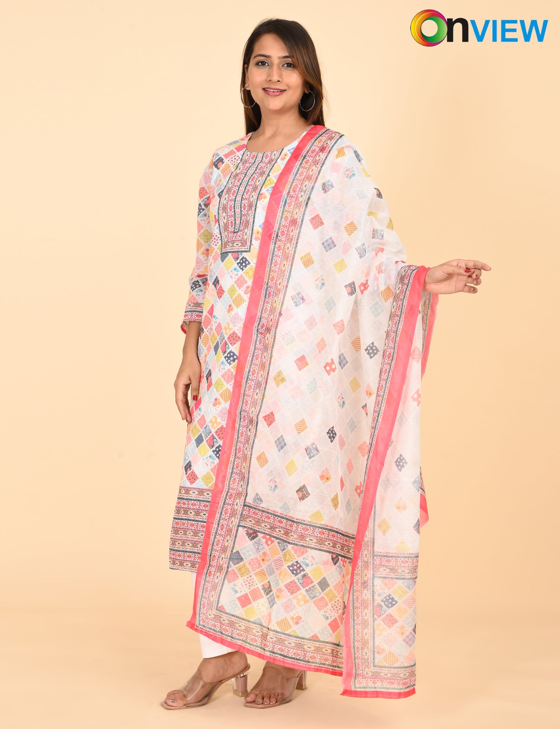 ONVIEW | 1329 | COTTON CHIKANKARI WORK WITH BORDER WITH DUPATTA