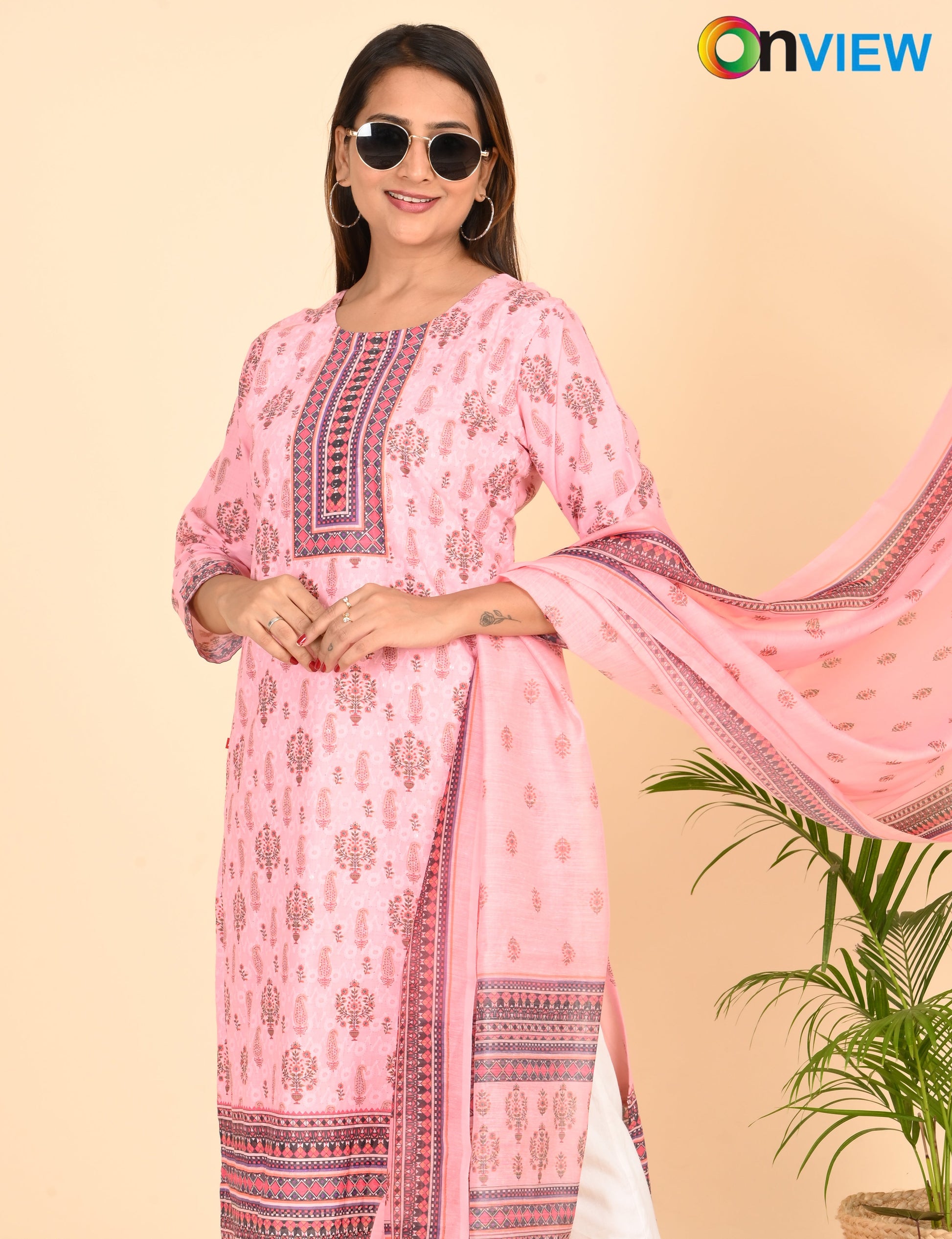 "Designed for modern women, the ONVIEW COTTON CHIKANKARI WORK BORDER WITH DUPATTA offers timeless elegance and reliable comfort."