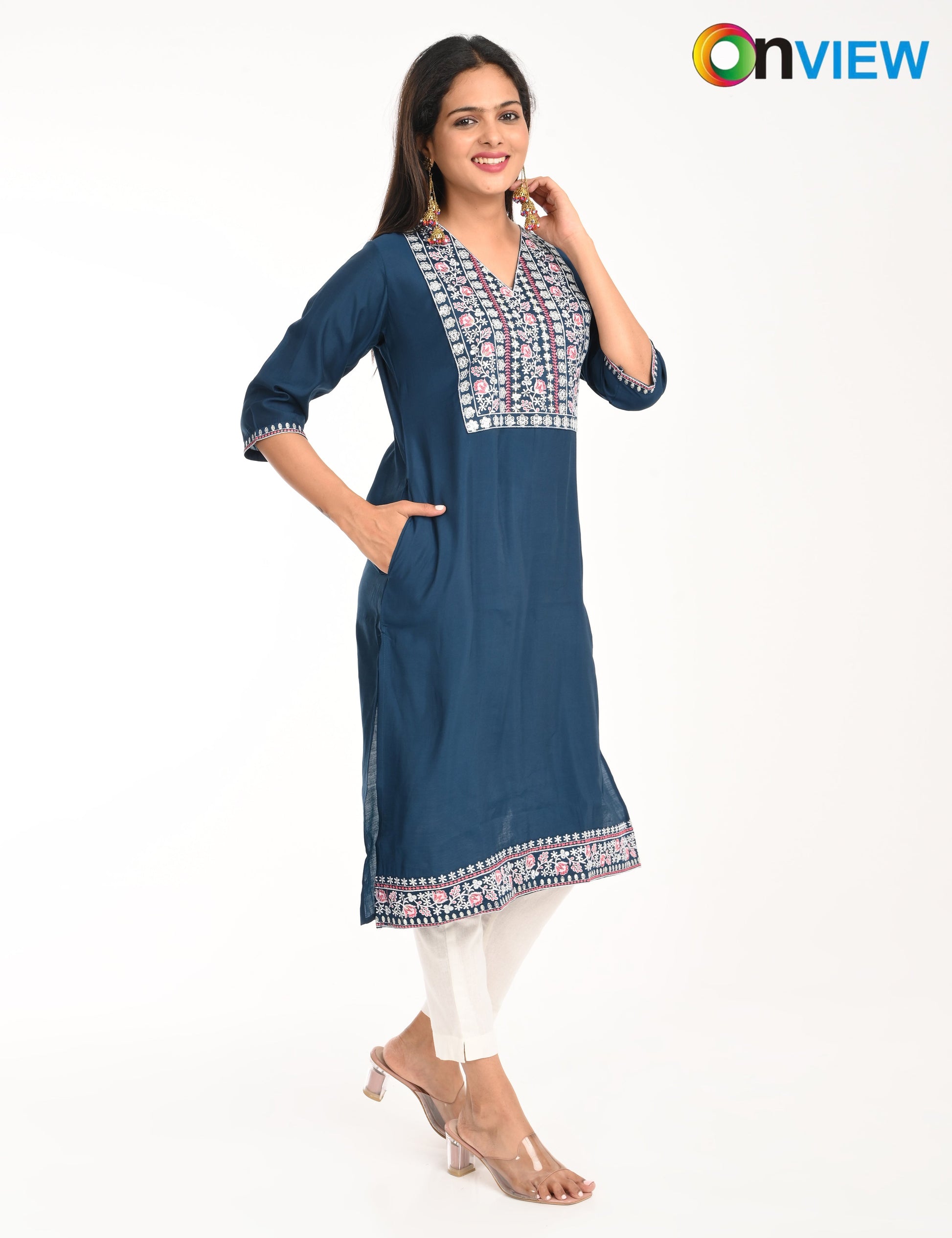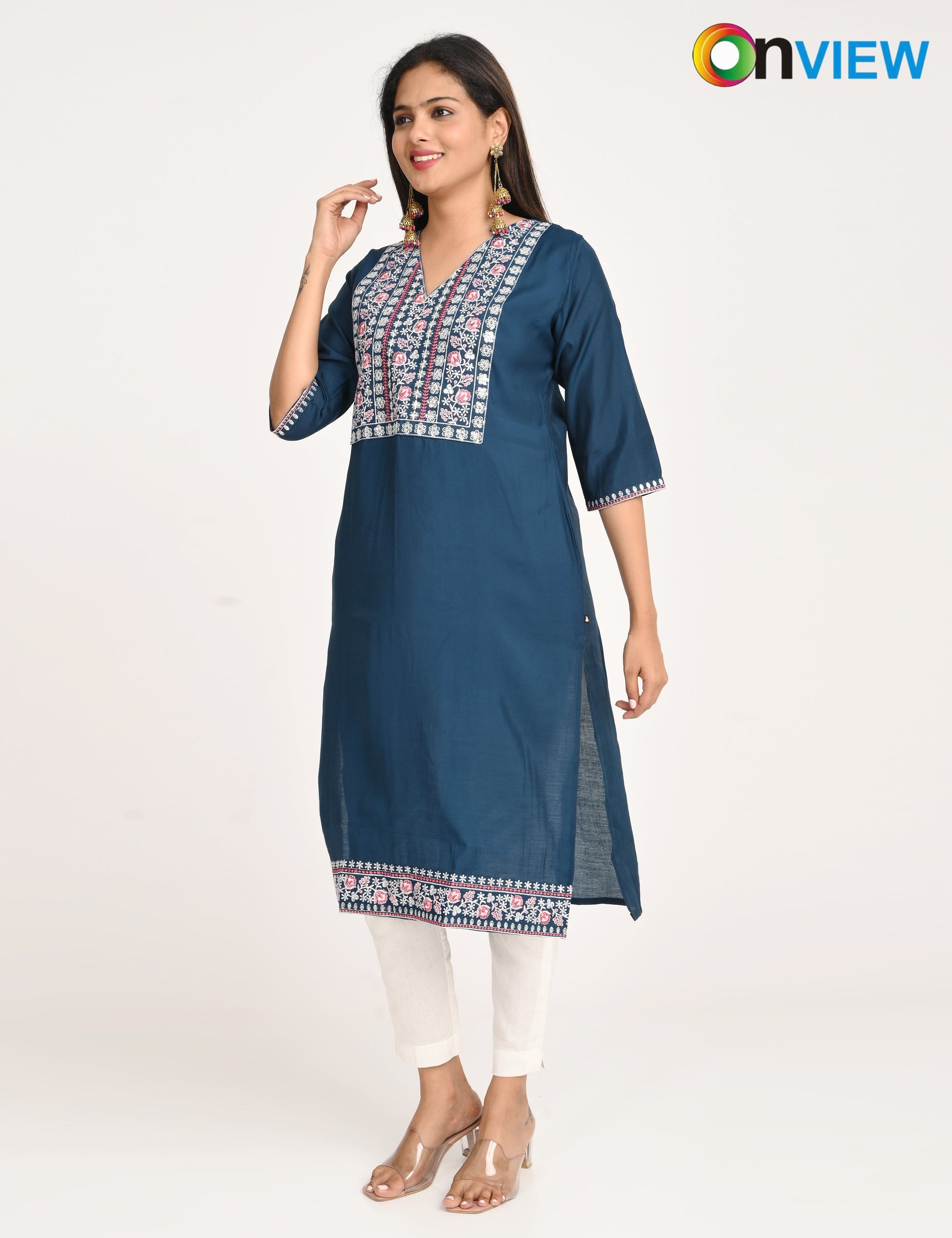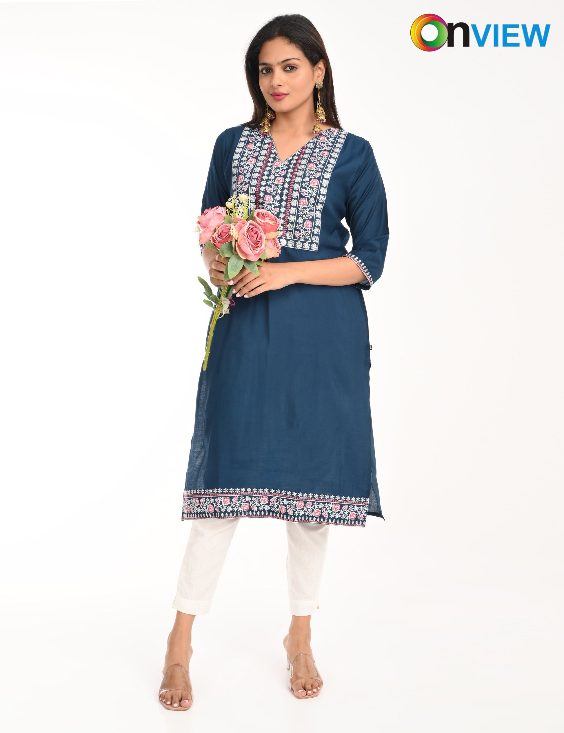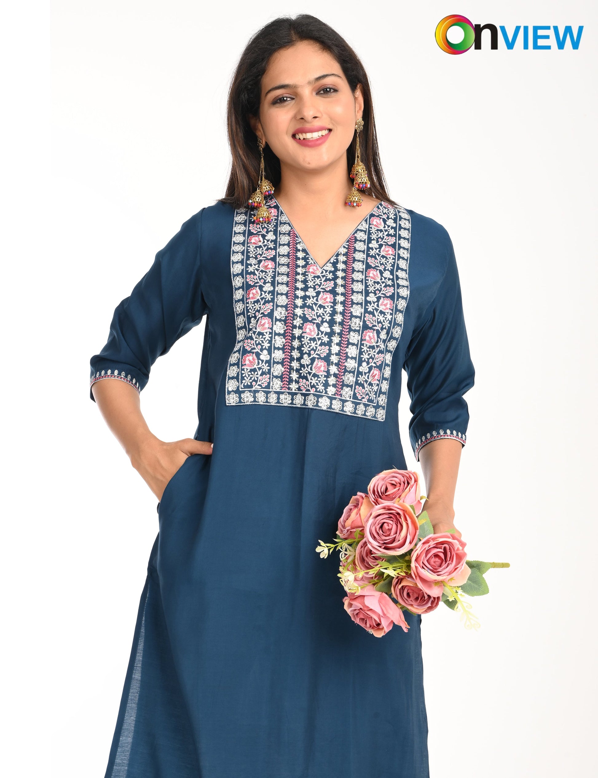 "Designed for modern women, the ONVIEW ROMAN SILK EMBROIDERY WITH BORDER offers timeless elegance and reliable comfort."