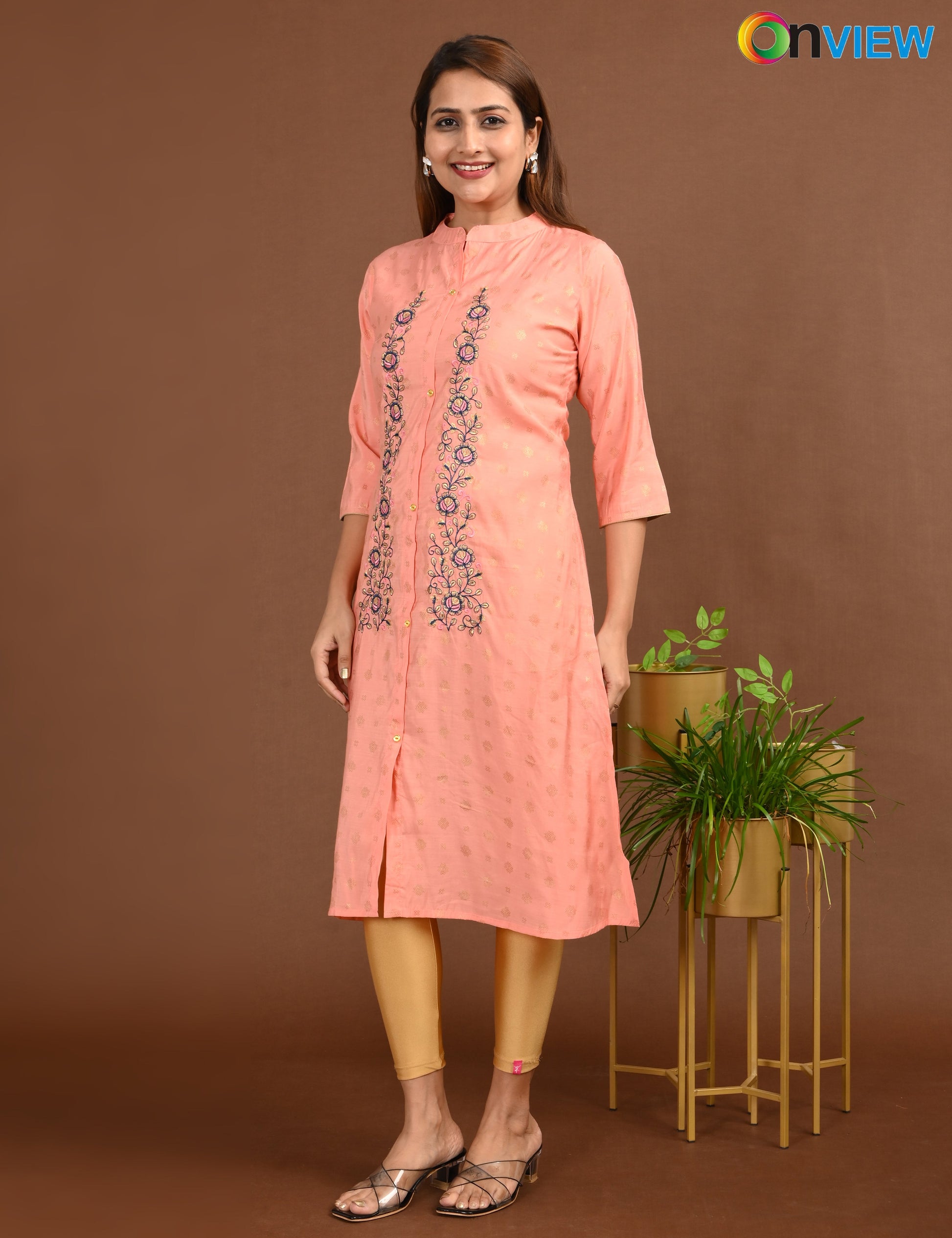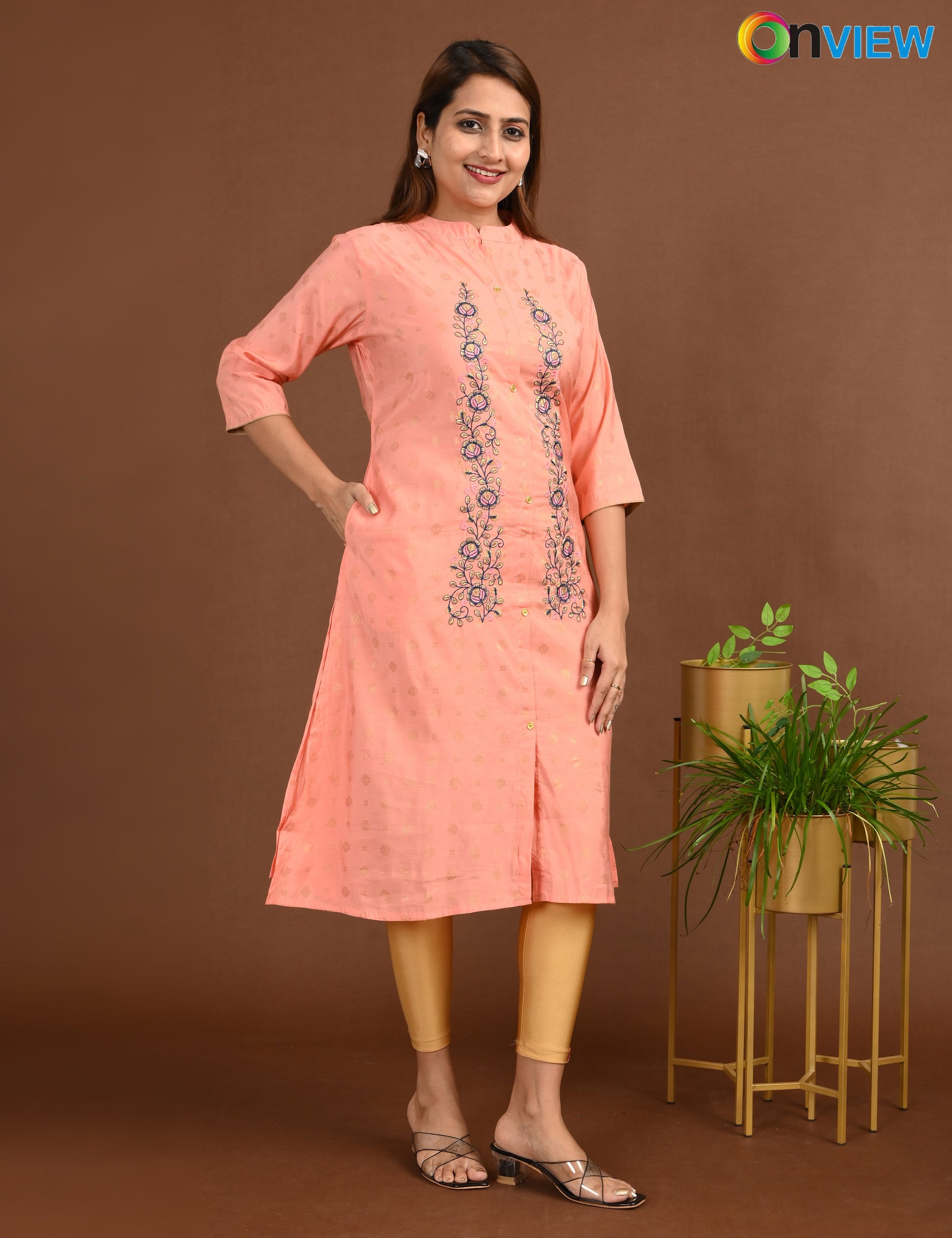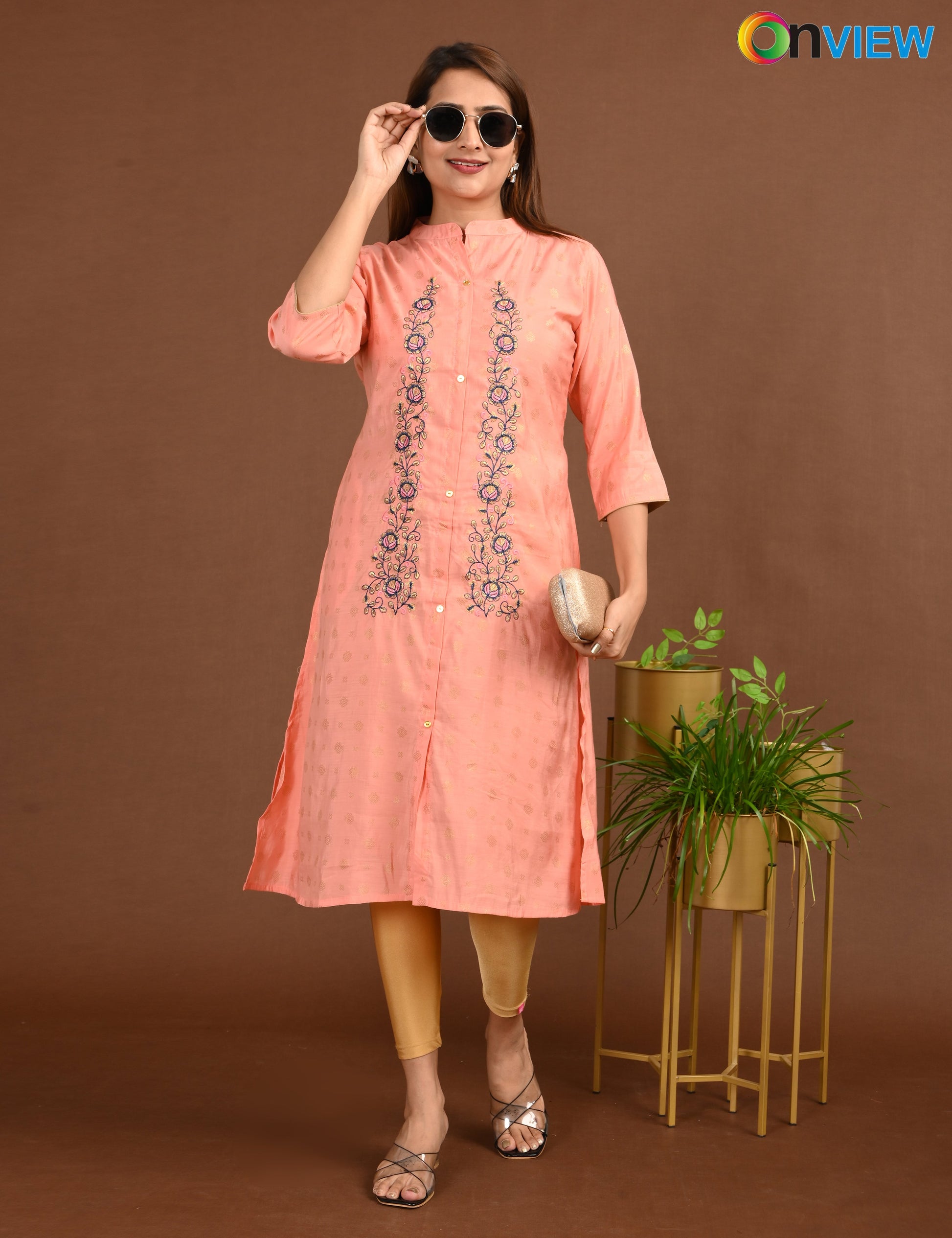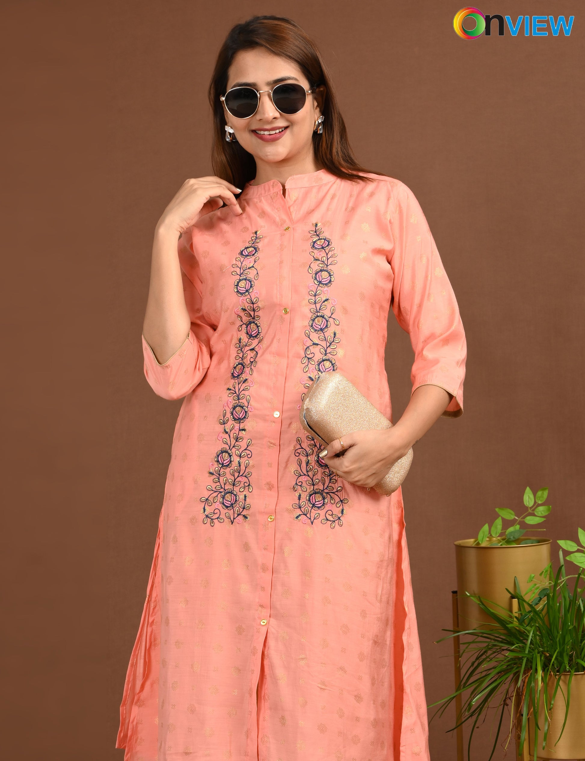 ONVIEW | 1672 | SILK A LINE SIDE OPEN WITH EMBROIDERY