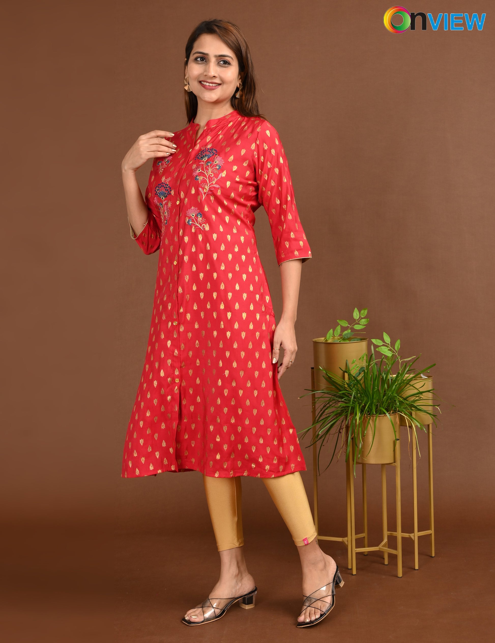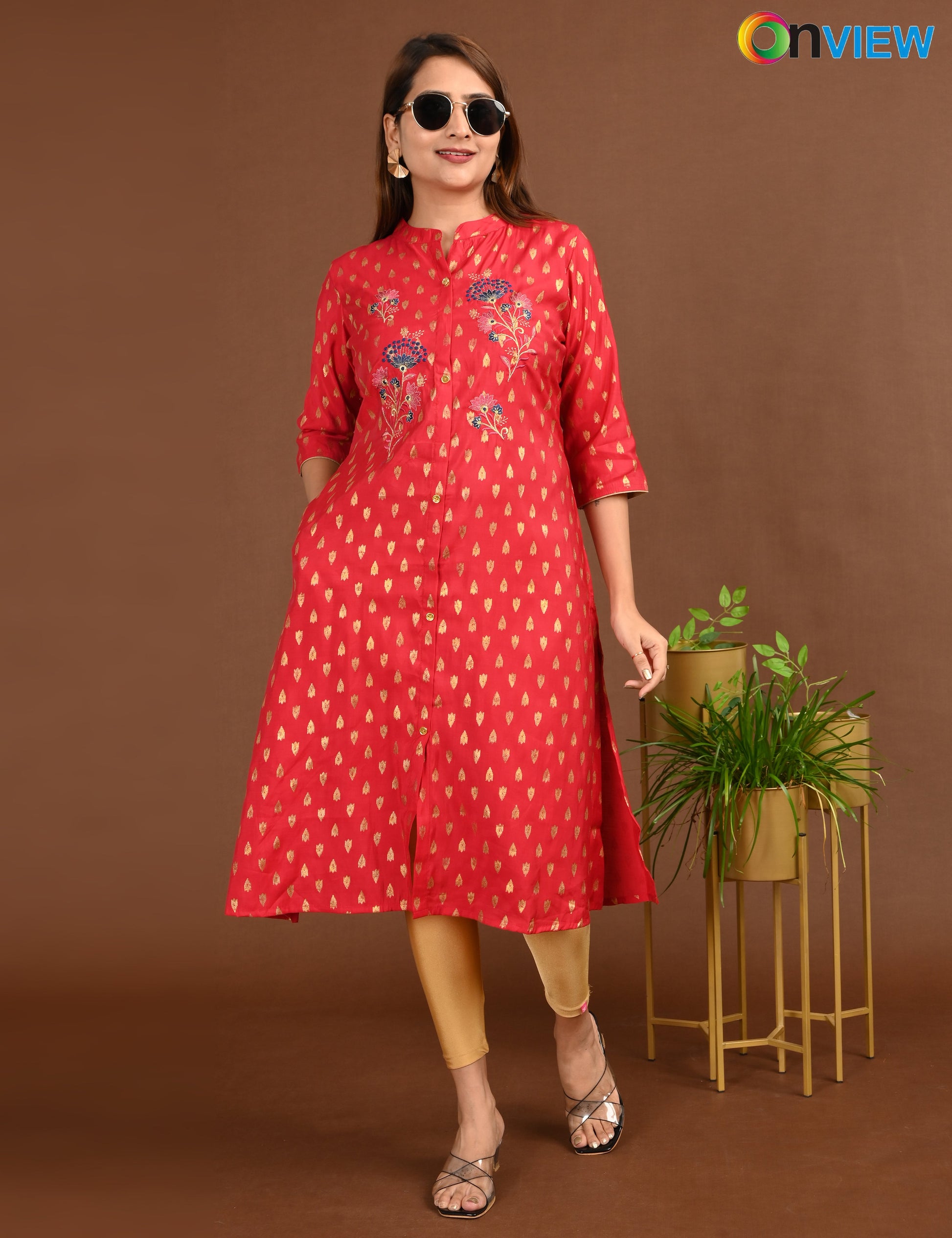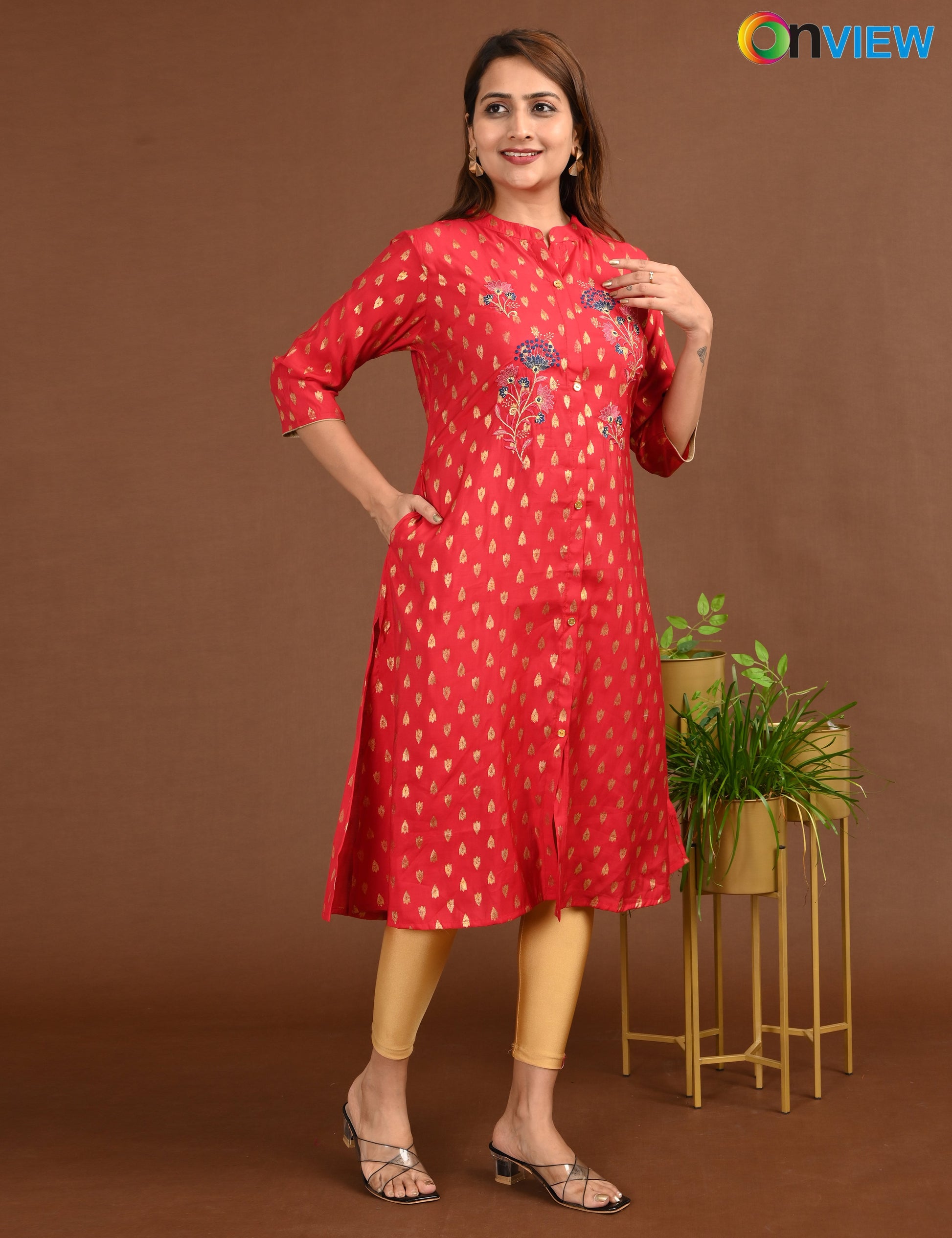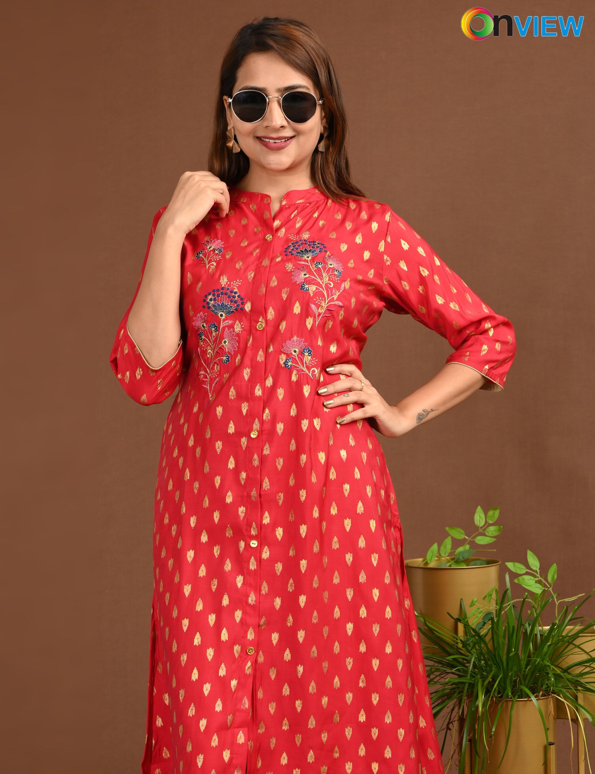ONVIEW | 1673 | SILK A LINE SIDE OPEN WITH EMBROIDERY