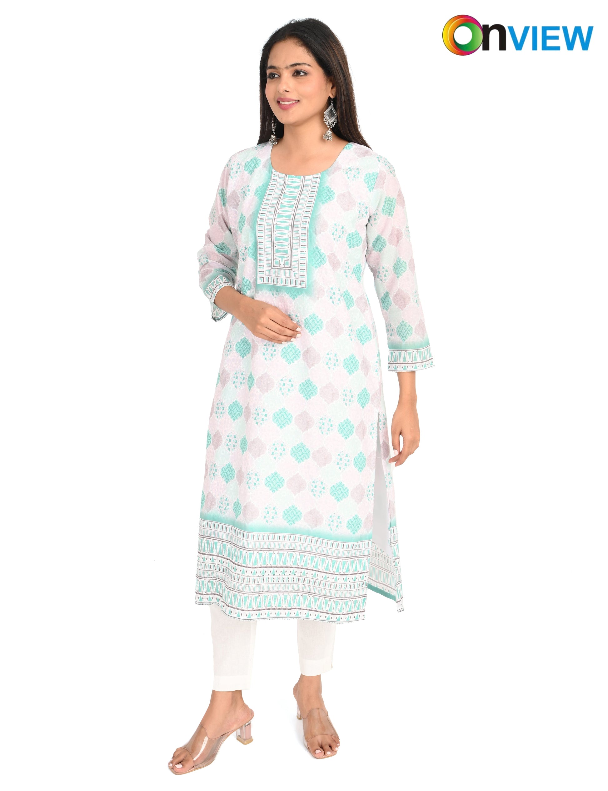 "Designed for modern women, the ONVIEW COTTON CHIKANKARI WORK WITH DIGITAL PRINT offers timeless elegance and reliable comfort."