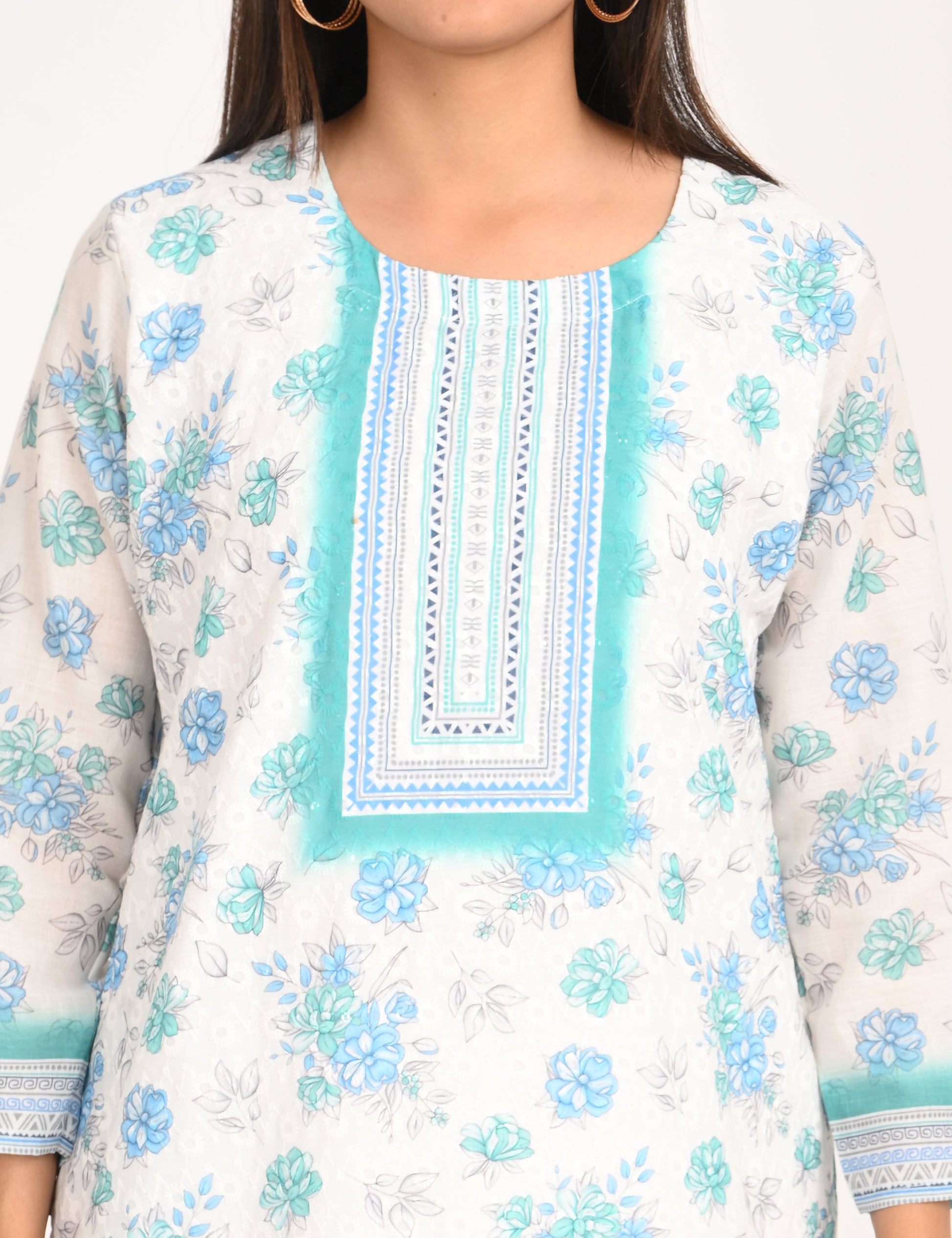 The ONVIEW COTTON CHIKANKARI WORK WITH DIGITAL PRINT is a sophisticated blend of luxurious fabric and delicate craftsmanship, designed to elevate your style effortlessly. Made from premium-quality silk, this kurti boasts a rich texture and an elegant sheen that exudes opulence, making it a perfect choice for special occasions or everyday elegance.